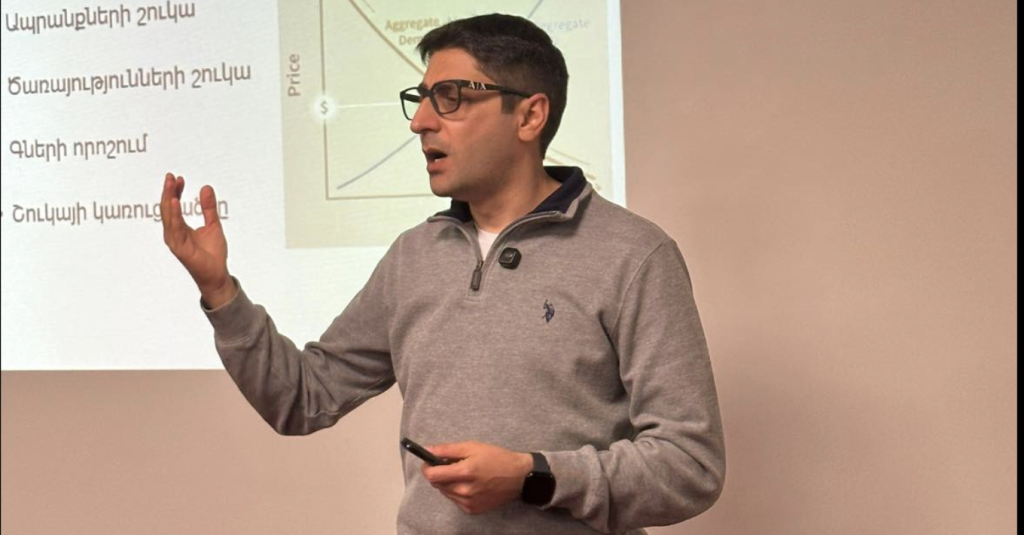 Դասընթացի շրջանակում բանախոսը ներկայացրեց մասնակիցներին, թե որոնք են տնտեսության մեջ կարևոր սուբյեկտները, ովքեր են սպառողները և արտադրողները։ Խոսեցին նաև շուկայից, կապիտալից և ռեսուրսներից։